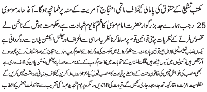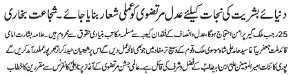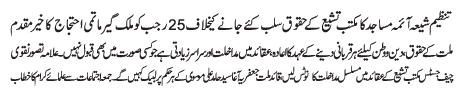 ISLAMABAD, February 9: The countrywide protests will be held on 25th Rajab Almurajab against the continuous interference in Shia beliefs, trampling over basic rights and discriminatory treatments |