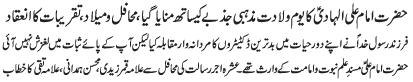 ISLAMABAD, February 7: Zahoor Purnoor of Imam Ali Alhadi (AS) will be celebrated today with great religious zeal and reverence |