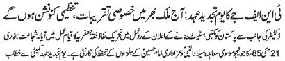 ISLAMABAD, February 10: TNFJ's Youme Tajdeed e Ehad; today countrywide special gatherings and conferences will be held |