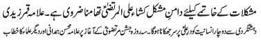 | ISLAMABAD, February 8: Millat e Jaffariya in Pakistan is in a pain; attack on the shia beliefs and ideologies is cause of grave concern - Resolution of Azadari Convention | ||