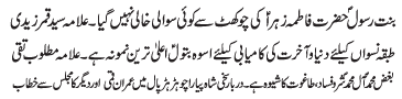 RAWALPINDI, January 10: No one ever went empty handed from the door of the beloved daughter of the Holy Prophet, Hazrat Fatima Zahra (SA) - Qamar zaidi |