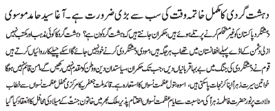 | ISLAMABAD, January 25: Rooting out terrorism is the need of the hour - Hamid Moosavi | ||