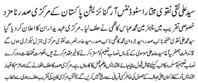 ISLAMABAD, January 28: Syed Ali Naqi Naqvi has been nominated as the President of Mukhtar Students Organization |