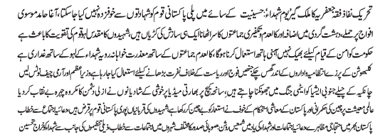 | ISLAMABAD, January 30: Youme Shuhadae Balouchistan: Today homage will be paid to the martyrs of the religion and the country - TNFJ | ||