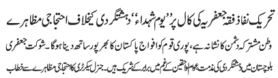RAWALPINDI, February 12: On 25 Rajab Matami Protests will be held throughout the country for the Shia rights - TNFJ |