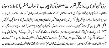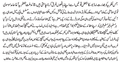 ISLAMABAD, February 1: Tehreek Nafaz e Fiqh e Jafariya announced the observation of the Aalmi Ashrae Ajre Rasalat from 1-10 Rajab Almurajab |