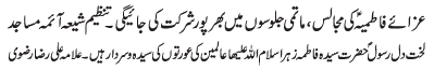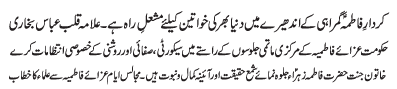 | ISLAMABAD, January 26: Programs of Ayyam e Azmat e Niswaan concluded, Mahafil held to mark Zahoor Purnoor of Hazrat Fatima Zahra (SA) | ||