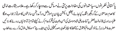 | ISLAMABAD, January 11: Tehreek Nafaz e Fiqh e Jafariya announced the observation of the "Ayyam e Madre Abbas Alamdar (AS)" from 9-13 Jamadiul Thani | ||