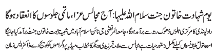 ISLAMABAD, January 7: Today the martyrdom anniversary of Hazrat Fatima Zahra (SA) will be commemorated with great religious zeal and reverence |
