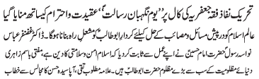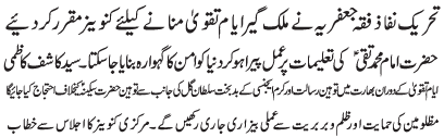 ISLAMABAD, June 27: The Tehreek Nafaz e Fiqh e Jafariya nominated countrywide conveners to oversee the programs of the " Ayyam e Taqwa" |