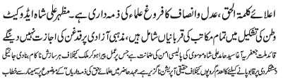 | ISLAMABAD, June 4: Reiterating divine teachings, propagation of justice and fair play is the duty of scholars - Mazhar Shah Advocate | ||