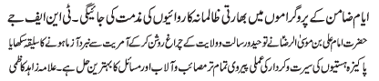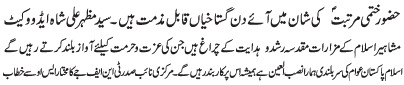 ISLAMABAD, June 1: On the call of the TNFJ "Youme NIghebane Risalat" was observed with great religious zeal and reverence |