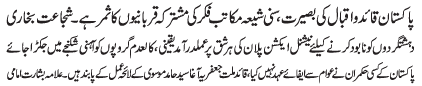 ISLAMABAD, June 13: Pakistan is the fruit of Quaid and Iqbals vision and is the result of Sunni and Shia united struggle - Shuja'at Bukhari |