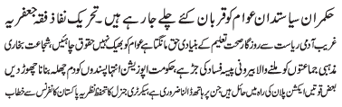 | ISLAMABAD, June 17: The rulers and the politicians are keep sacrificing the public - TNFJ | ||