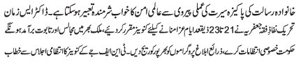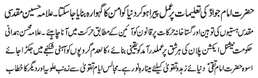 | ISLAMABAD, June 6: The TNFJ nominated the conveners to oversee the programs of Ayyam e Zain (AS) | ||