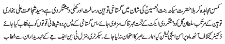 ISLAMABAD, June 12: The Chief Justice must take notice of consistent violations of the article-227. Foundations of violating Personal Laws were laid during the era of last government through passing disputed amendment bill of Family Laws - Hamid Moosavi |