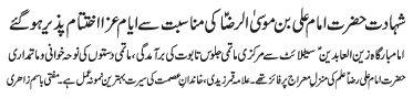 ISLAMABAD, June 23: The Shahadat of Imam Ali Raza (AS) will be commemorated today with great religious zeal and reverence |