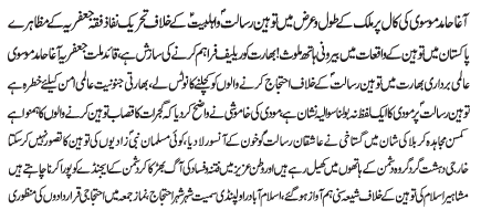 | ISLAMABAD, June 8: The international institutions should take immediate notice of blood shed of Kasmiris in Indian - Mazhar Shah | ||