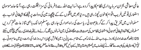 | ISLAMABAD, June 26: International financial crises is caused by the capitalism; humanity is being punished for deviating from divine teachings of Almighty Allah - Hamid Moosavi | ||