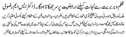 | ISLAMABAD, March 15: Today Youme Moazan e Hussainiat will be celebrated with great religious zeal and reverence - M H Jafferi | ||
