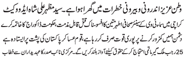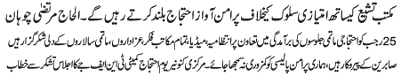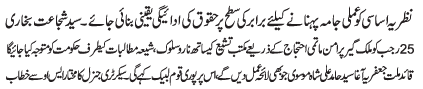 | ISLAMABAD, February 24: 25 Rajab, countrywide Matami protests will be the first step against the denial of the Shia rights - Prof. Samar Naqvi | ||