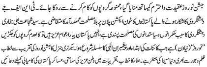 RAWALPINDI, March 22: Jashan e Noroz was celebrated with great religious zeal and reverence; the proscribed groups must be stopped roaming about - TNFJ |