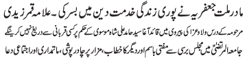ISLAMABAD, March 31: Madre Millat e Jafariya spent whole her life serving the religion - Qamar Zaidi |