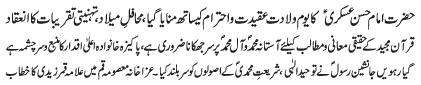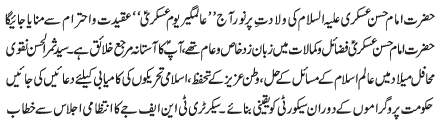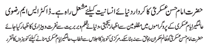 RAWALPINDI, November 3: The pious life of Hazrat Imam Hassan Askari (AS) is the beacon of light for humanity - Dr S M Rizvi |
