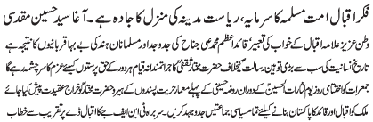 ISLAMABAD, November 10: The ideology of Iqbal is the asset of the Muslim nation and the path to get to the state of Madina - Agha Muqadasi |