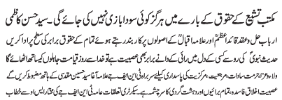 RAWALPINDI, November 13: There will be no compromise when it comes to the rights of the Maktab e Tasheyyo - Hassan Kazmi |