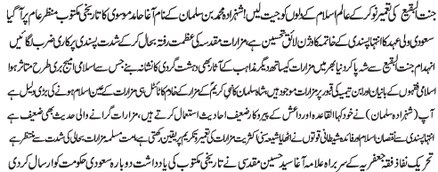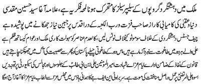 ISLAMABAD, April 30: On the call of the Tehreek Nafaz e Fiqh e Jafariya rallies were held throughout Pakistan against extremism and for the restoration of the former glory of the Holy Shrines |