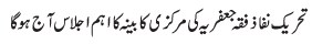RAWALPINDI, August 30: High level meeting of the Tehreek Nafaz e Fiqh e Jafariya has been summoned today |