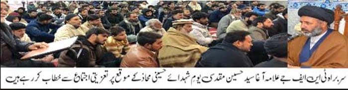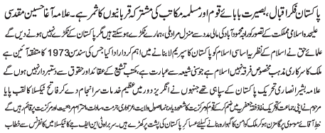 RAWALPINDI, January 10: Pakistan is the fruit of the vision of Iqbal, foresight of Babae Qoum and the sacrifices of all the school of thoughts - Agha Muqadasi |
