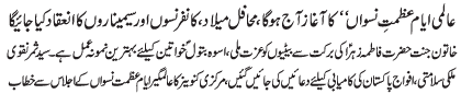 RAWALPINDI, January 11: The "Aalmi Ayyam e Azmat e Niswaan" begins today, mahafil, meelad, conferences and seminars will be held |