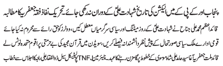 | ISLAMABAD, January 23: Elections shouldn't take place in Punjab and KPK during the martyrdom of Imam Ali (AS) - TNFJ demand | ||