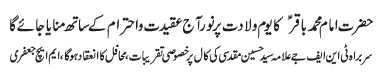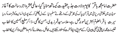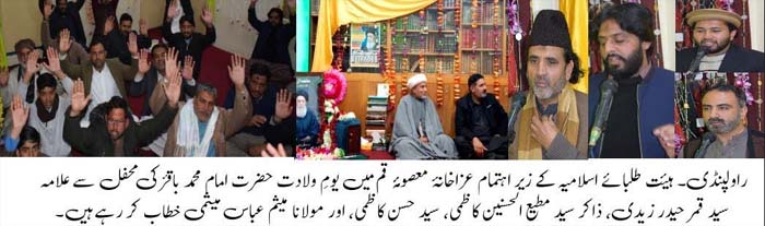 RAWALPINDI, January 25: Jashan Purnoor of Imam Mohammad Baqir (AS) celebrated with great religious zeal and reverence; Aalmi Ashra Ajre asalat begins |
