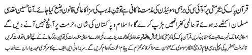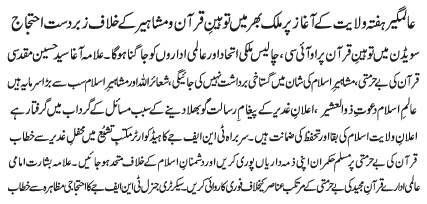 RAWALPINDI, July 4: The condemnation of Sweden by the OIC over the insult of the Holy Quran is insufficient; there should be an international law of "insult of any religion" to put an end to this type of heinous behaviour - Hussain Muqadasi |