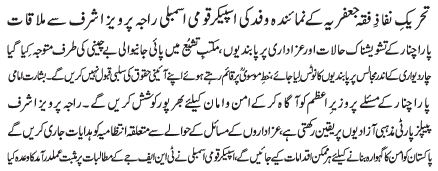 | ISLAMABAD, July 12: Delegation of the TNFJ met with the speaker national assembly, Raja Parwaez Ashraf | ||