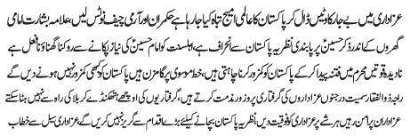 ISLAMABAD, July 23: Pakistan's image is being damaged by causing unnecessary hurdles in Azadari programs; the rulers and the Army Chief should take notice - Basharat Imami |