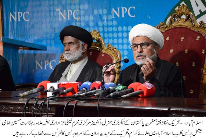 ISLAMABAD, July 25: Stop oppressing peaceful Shia Sunni Azadars of Imam Hussain (A.S); a bigger step to defend constitutional rights will not be avoided if needed - Basharat Imami |