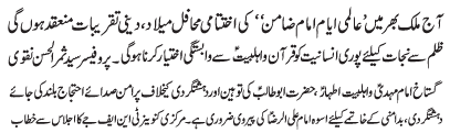 ISLAMABAD, June 5: The blasphemy against Hazrat Imam Mahdi (AS) is an open act of terrorism - Basharat Imami |