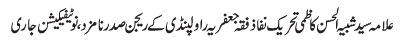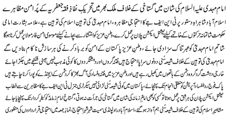 RAWALPINDI, June 12: One who insulted the honour of Imam e Zaman (AS)should be brought to justice - TNFJ |