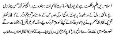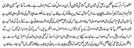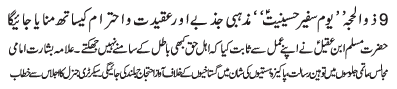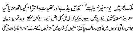 | RAWALPINDI, June 29: The "Youme Safeer e Hussainiat" was commemorated through out the country with respect and reverence | ||