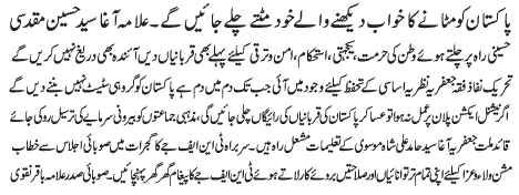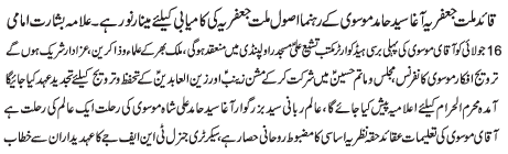 RAWALPINDI, June 26: Leading principles of the Quaid e Milla e Jafariya Agha Syed Hamid Ali Shah Moosavi are the beacon of light for the success of Jafariya nation - Basharat Imami |