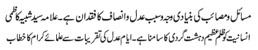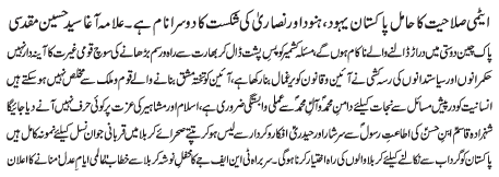 ISLAMABAD, March 3: Primary reason of all the hardships faced by Muslims is absence of fair play and Justice - Allama Shabeeh Kazmi |