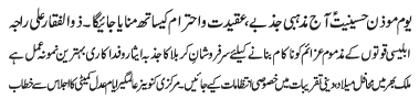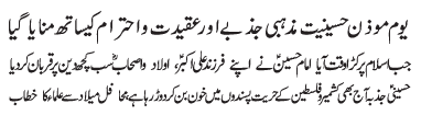 RAWALPINDI, March 4: Youme Moazane Hussainiat will be celebrated today with great religious zeal and reverence - Zulfiqar Ali Raja |