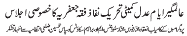 | ISLAMABAD, March 10: Alamgheer Ayyam e Adal committee of the TNFJ held special meetings | ||