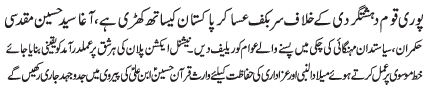 RAWALPINDI, March 13: The whole nation is standing shoulder to shoulder with the Armed Forces of Pakistan against terrorism - Agha Muqadasi |