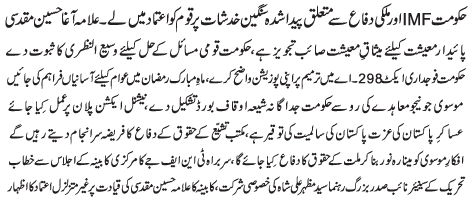 RAWALPINDI, March 21: The government should take the nation in confidence on the issues surrounding IMF and the country's defence - Agha Muqadasi |