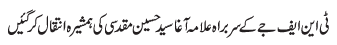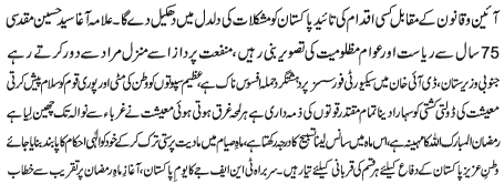 ISLAMABAD, March 11: We stand with the president of the Tehreek Nafaz e Fiqh e Jafariya Allama Agha Syed Hussain Muqadasi - Allama Fakhar Abidi |